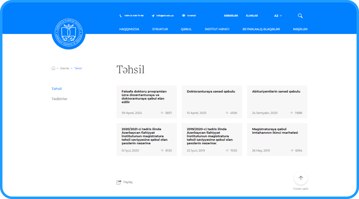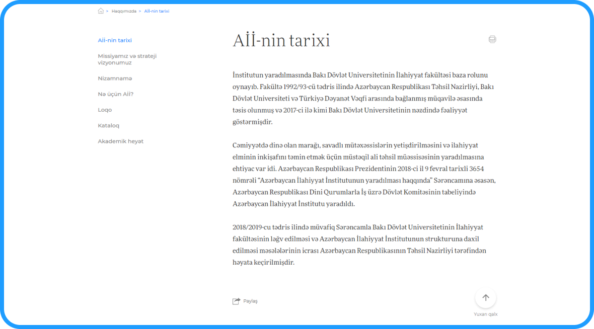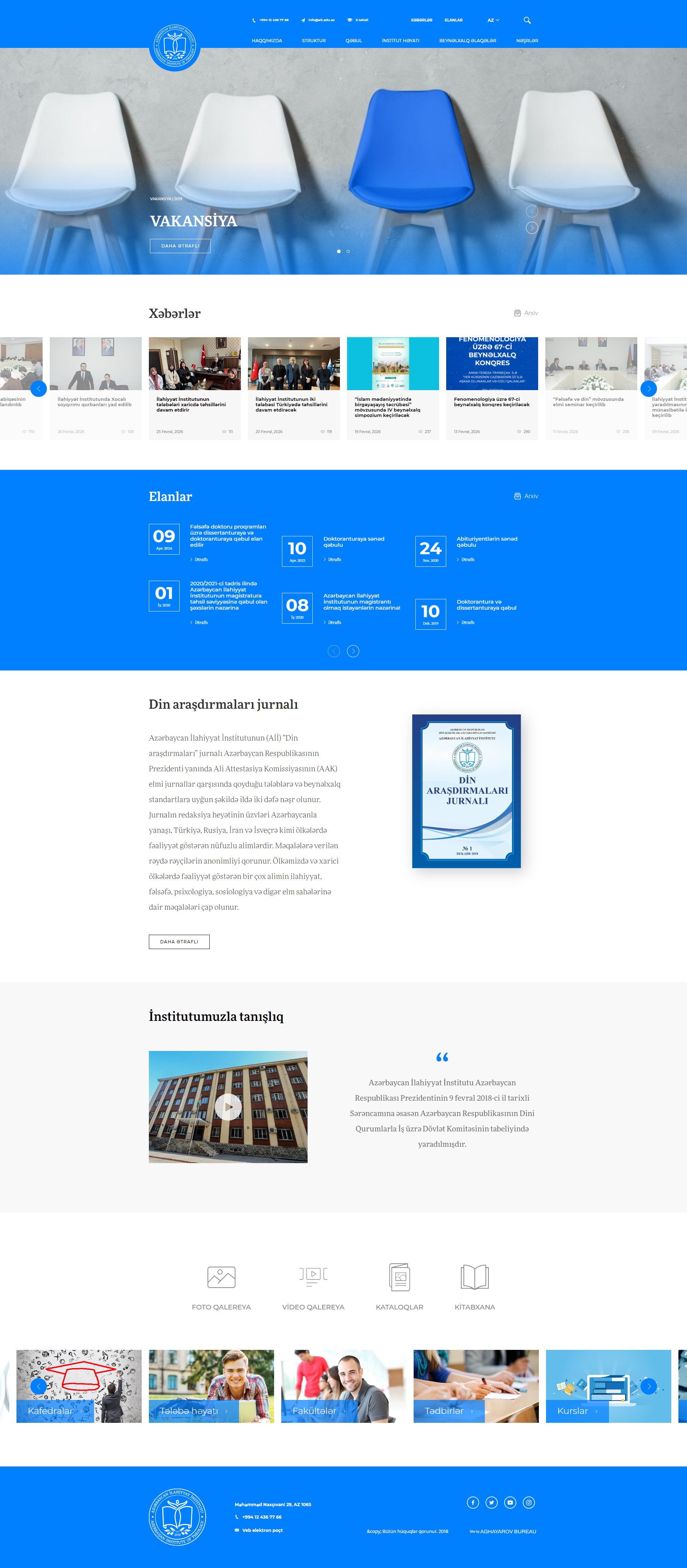 Azərbaycan İlahiyyat İnstitutu üçün hazırlanmış rəsmi veb-sayt qurumun təhsil proqramları, akademik fəaliyyəti və qəbul qaydaları haqqında məlumatların təqdim olunmasını təmin edir.