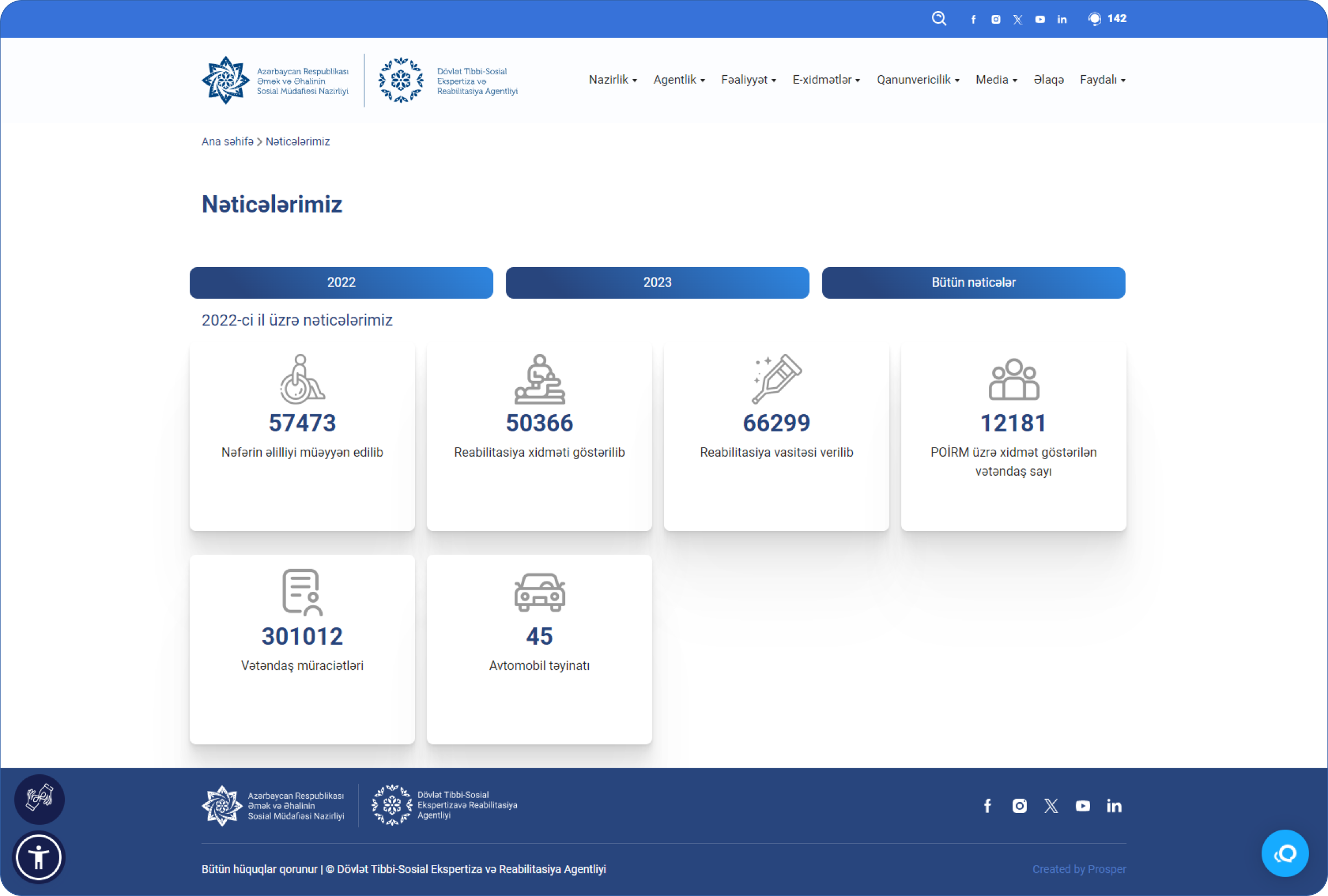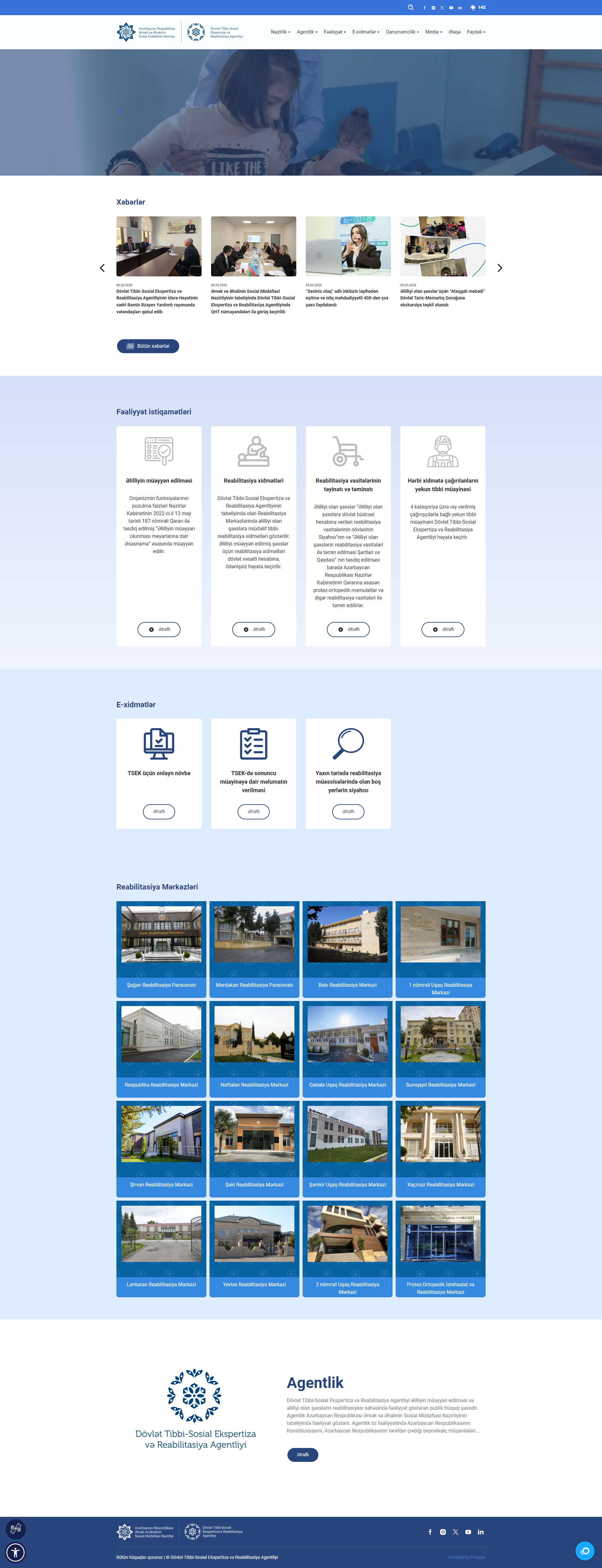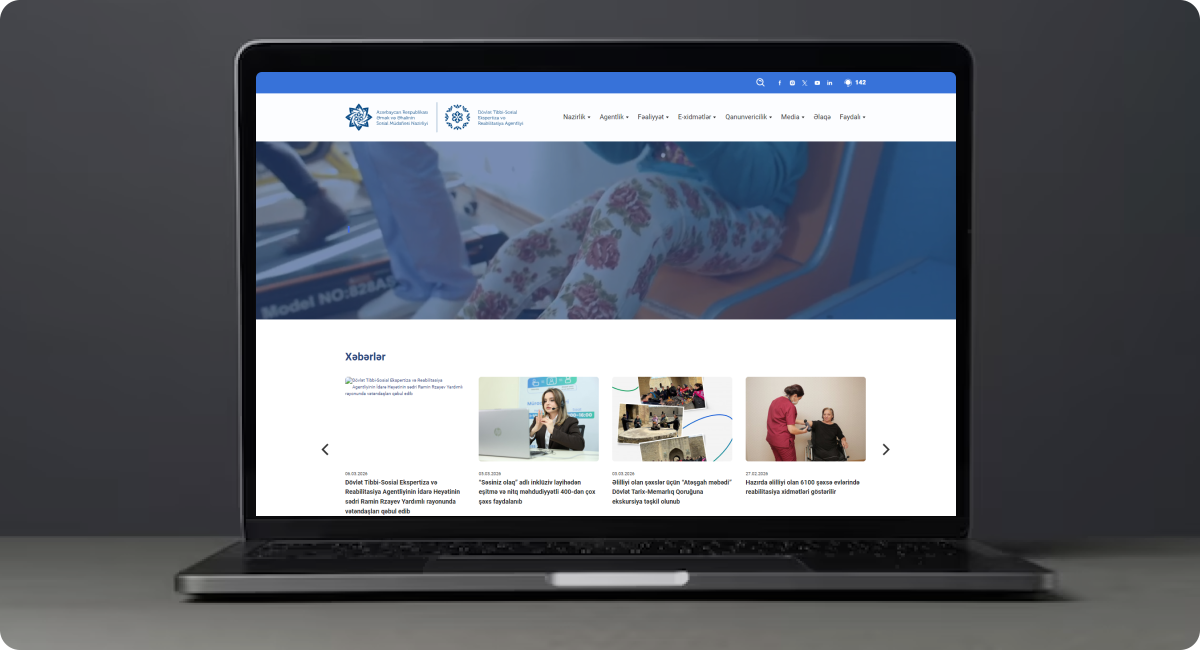 Dövlət Tibbi-Sosial Ekspertiza və Reabilitasiya Agentliyi üçün hazırlanmış rəsmi veb-sayt qurumun xidmətləri, reabilitasiya proqramları və sosial dəstək mexanizmləri haqqında məlumatların təqdim olunmasına şərait yaradır.