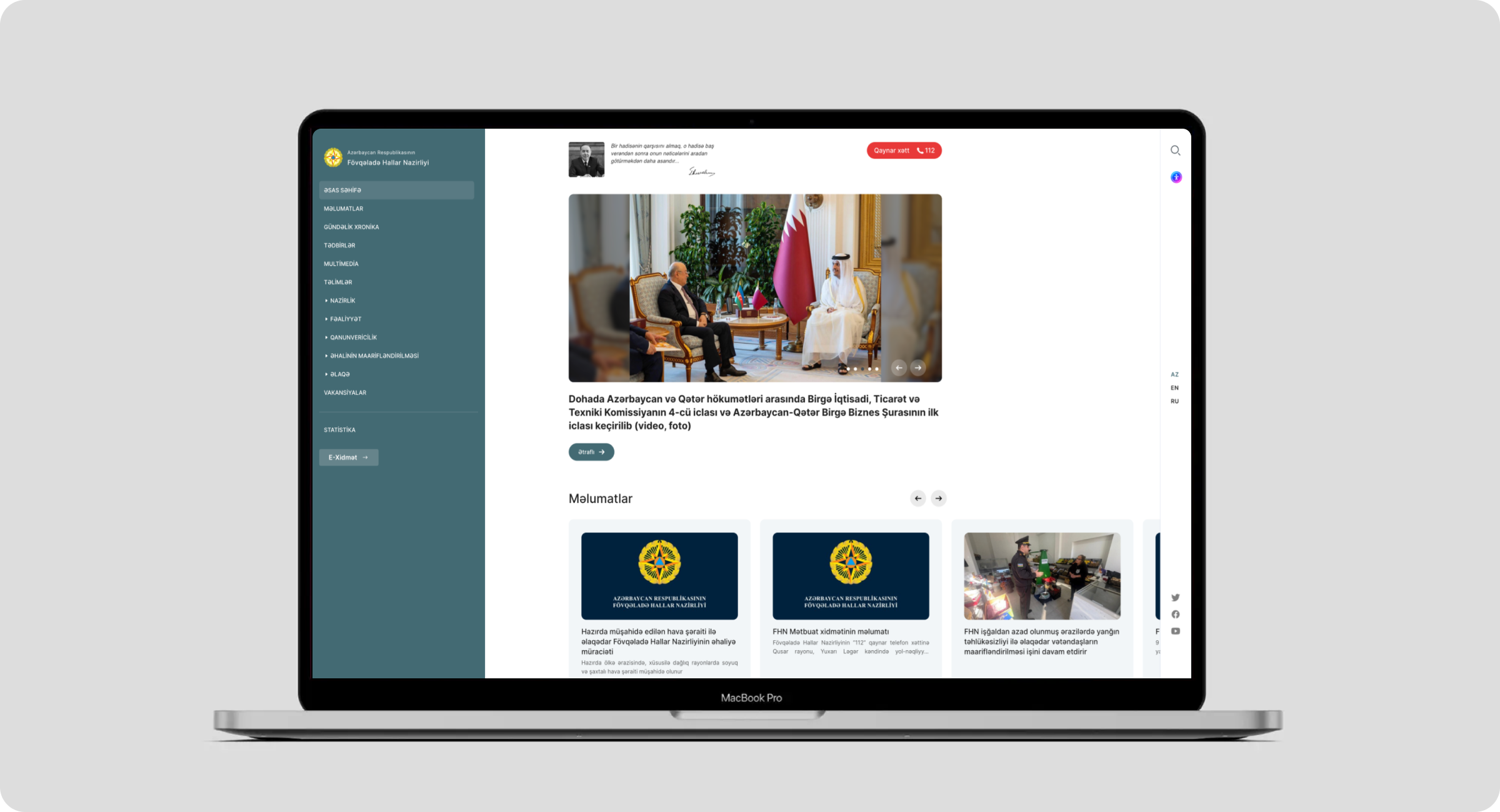 Saytın dizaynı və strukturu sadə naviqasiya ilə təşkil olunub ki, bu da vətəndaşların hüquq və vəzifələr haqqında məlumatları tez və düzgün əldə etməsinə imkan yaradır. Rəsmi portal həm mobil, həm də desktop cihazlarda tam uyğun şəkildə işləyir və müxtəlif kateqoriyalara bölünmüş məzmunla həm əhali, həm də professional istifadəçilər üçün faydalıdır. Hər bir bölmə — xəbərlər, elanlar, təhlükəsizlik təlimatları, sənədlər — dəqiq təsnifatla təqdim olunur ki, istifadəçi ən vacib informasiyanı bir neçə kliklə tapa bilsin.