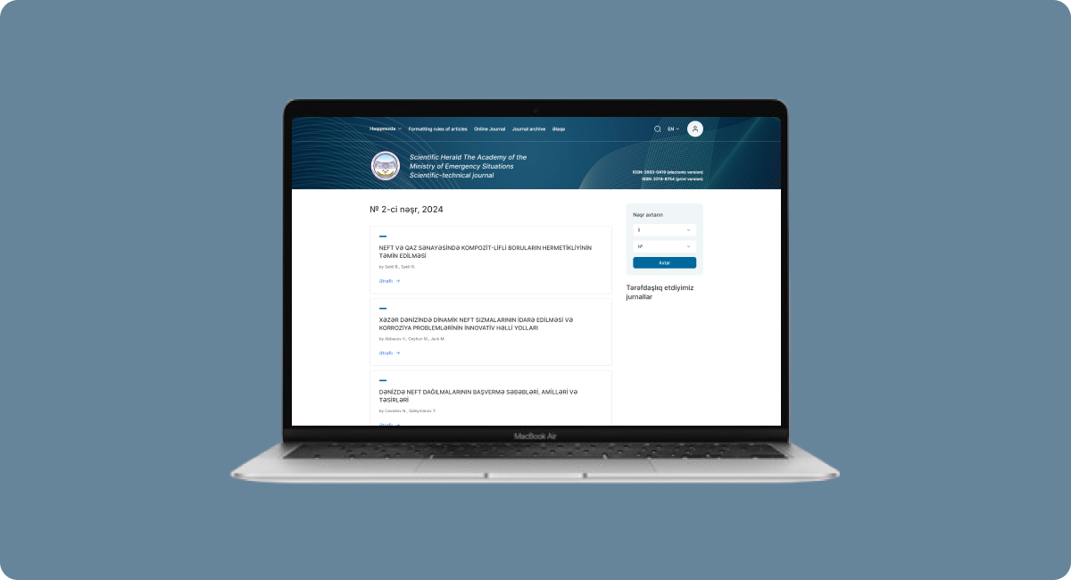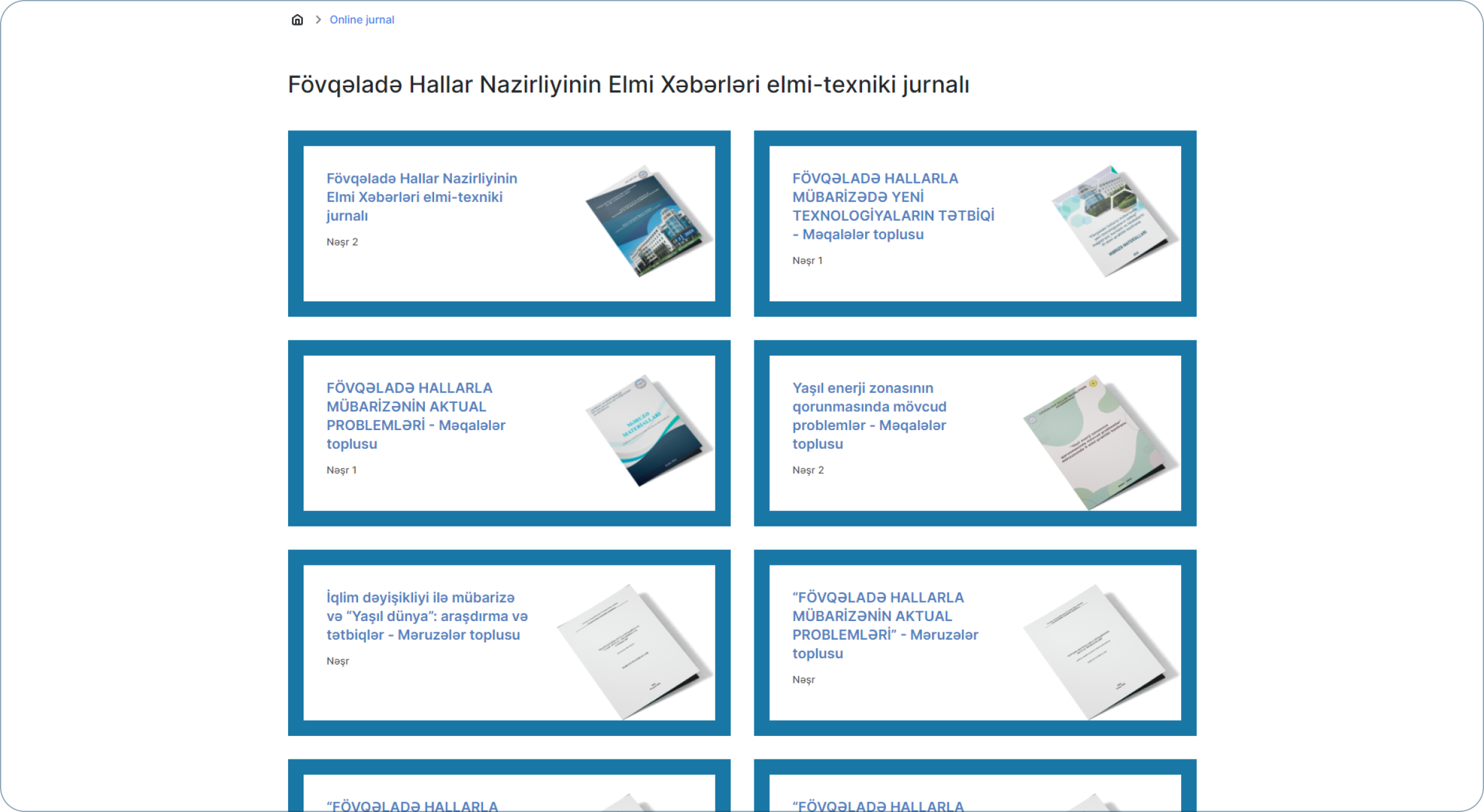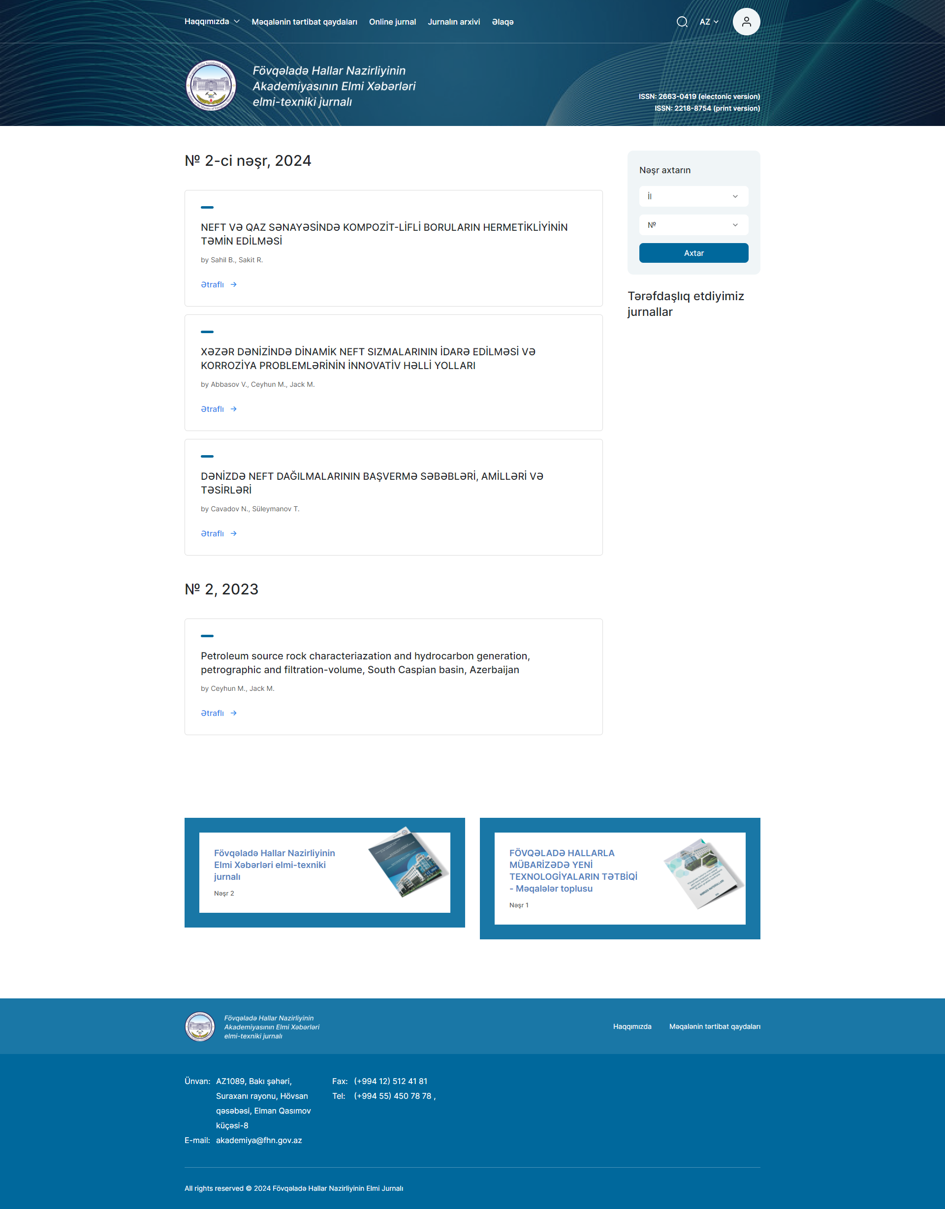 Fövqəladə Hallar Nazirliyi nəzdində fəaliyyət göstərən elmi jurnal üçün hazırlanmış rəsmi veb-saytdır. Platforma jurnalın elmi məqalələr, buraxılışlar və digər akademik materialların oxuculara təqdim olunması məqsədilə yaradılmışdır.