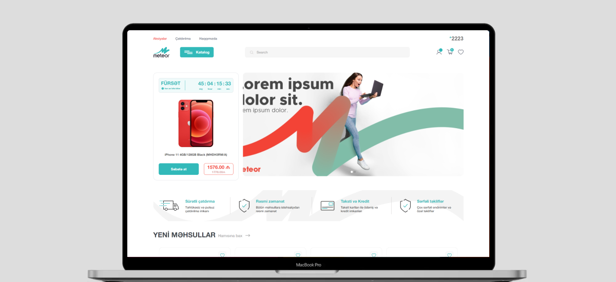 Meteor, müasir alış-veriş vərdişlərinə uyğun hazırlanmış çevik və funksional e-commerce platformasıdır. Layihənin əsas məqsədi rəqəmsal ticarət sahəsində fəaliyyət göstərən brendlər üçün istifadəsi rahat, performans baxımından stabil və dizayn baxımından cəlbedici bir onlayn mağaza yaratmaq idi.