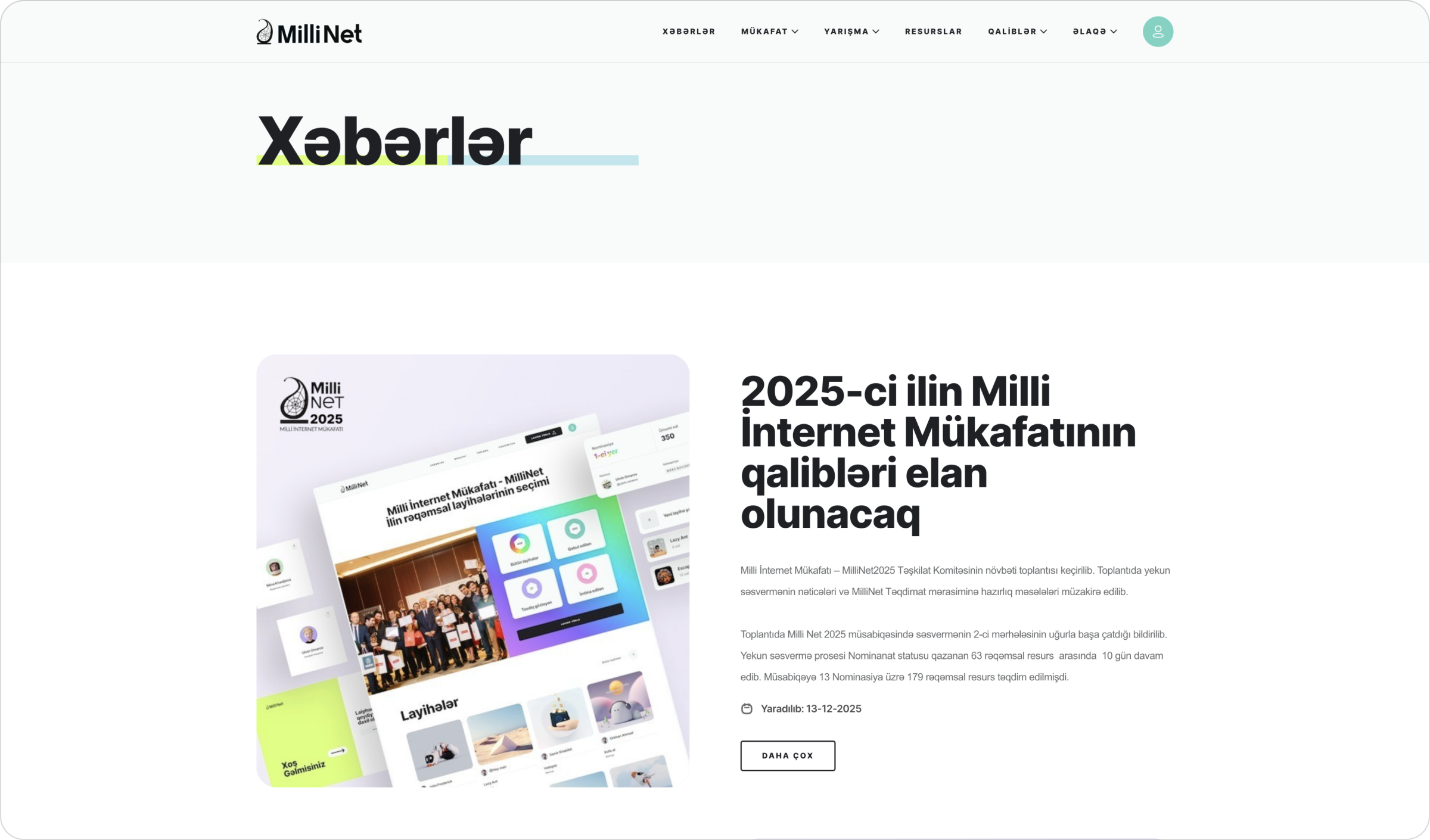 millinet.az – Milli İnternet Mükafatı – Azərbaycan İnternet Forumu tərəfindən təsis edilən peşəkar və illik texnologiya mükafatıdır. Bu platforma ölkədə fəaliyyət göstərən milli internet resurslarını bir yerə toplayır, onların yaradıcılıq və funksional dəyərini qiymətləndirir və geniş auditoriyaya təqdim edir. MilliNet həm sosial, həm mədəni, həm də texnoloji sahələrdə yaradılan layihələrin tanınmasını təmin edən rəqəmsal məkan kimi fəaliyyət göstərir.