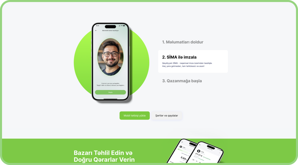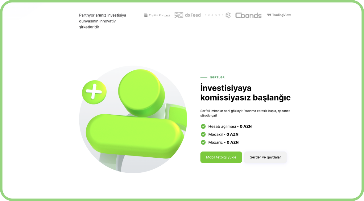 Saytın interfeysi sadə, funksional və mobil uyğun şəkildə dizayn edilib. İstifadəçilər fond bazarı, istiqrazlar, səhmlər və digər maliyyə alətləri barədə ətraflı məlumat əldə edə bilir, suallarına tez cavab tapa bilir və investisiya qərarlarını rahatlıqla verə bilirlər.