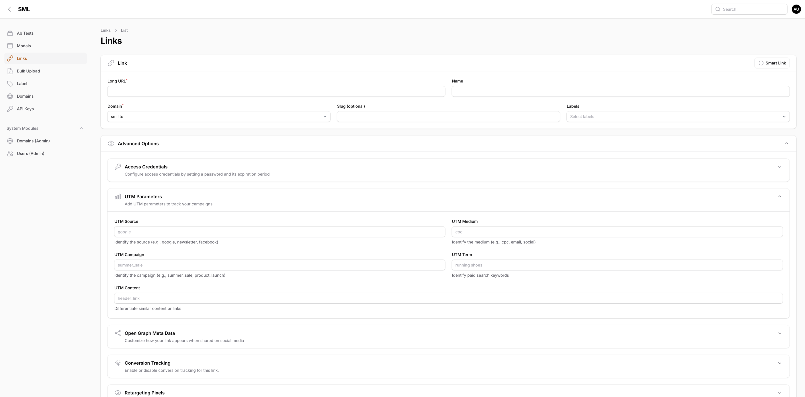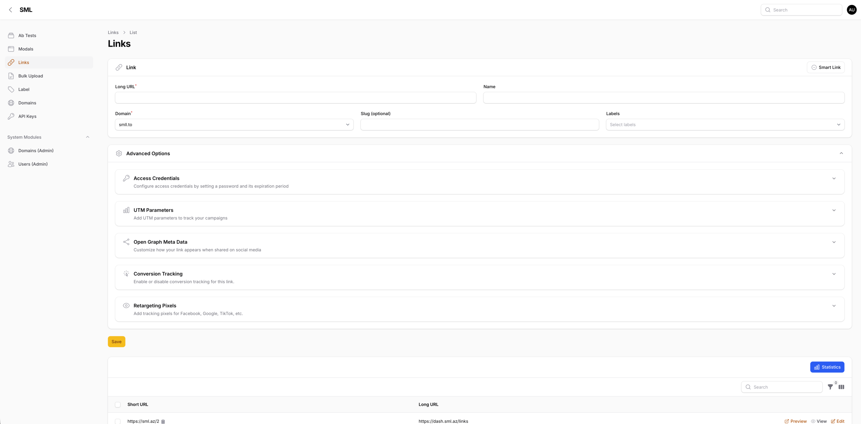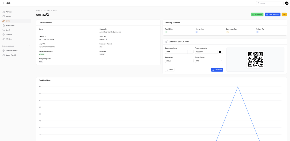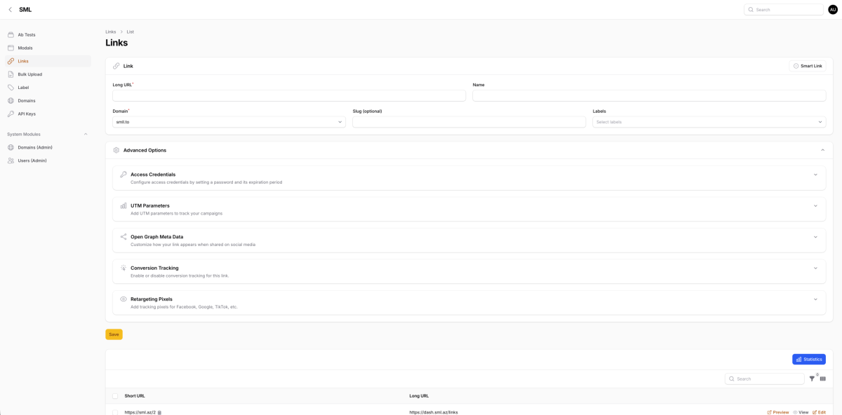 Müasir rəqəmsal dünyada linklərin düzgün idarə olunması marketinq və onlayn fəaliyyətlərin uğuru üçün böyük əhəmiyyət daşıyır. SML.az platformamız sizə qısa link yaratmaq, bio link səhifələri qurmaq, QR kodlar generasiya etmək və link analitikasını izləmək üçün güclü və istifadəsi asan alətlər təqdim edir. Platforma vasitəsilə bütün linklərinizi mərkəzləşdirilmiş şəkildə idarə edə, onların performansını real vaxtda analiz edə və marketinq strategiyalarınızı daha effektiv şəkildə optimallaşdıra bilərsiniz.