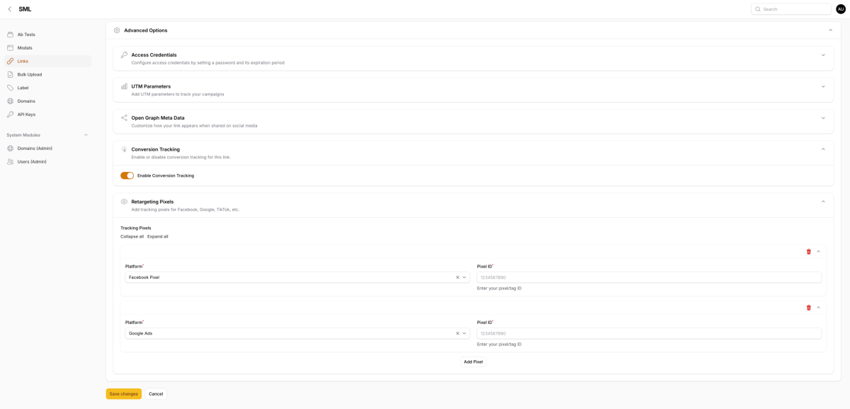 Linklərinizə fərdi skriptlər əlavə edin və analitika və digər xidmətləri linklərinizə qoşun.