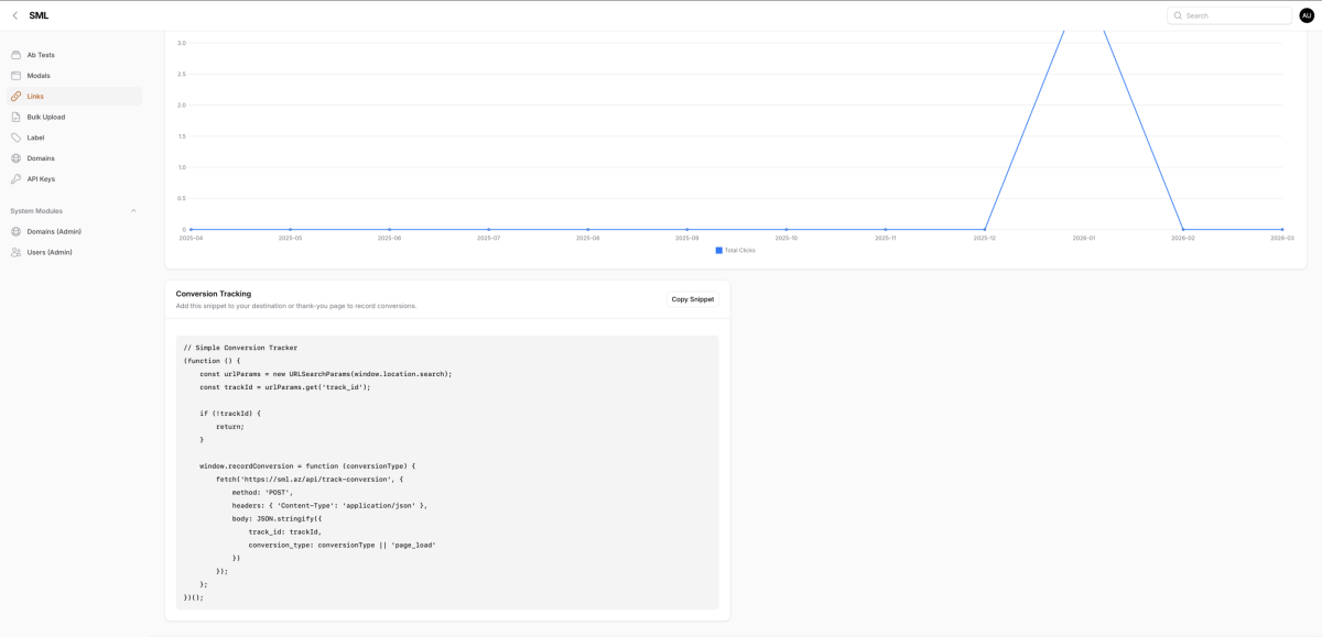 Linklərin performansını ölçmək uğurlu marketinq strategiyasının vacib hissəsidir. Platformamız real vaxt analitika təqdim edir və aşağıdakı məlumatları göstərir: