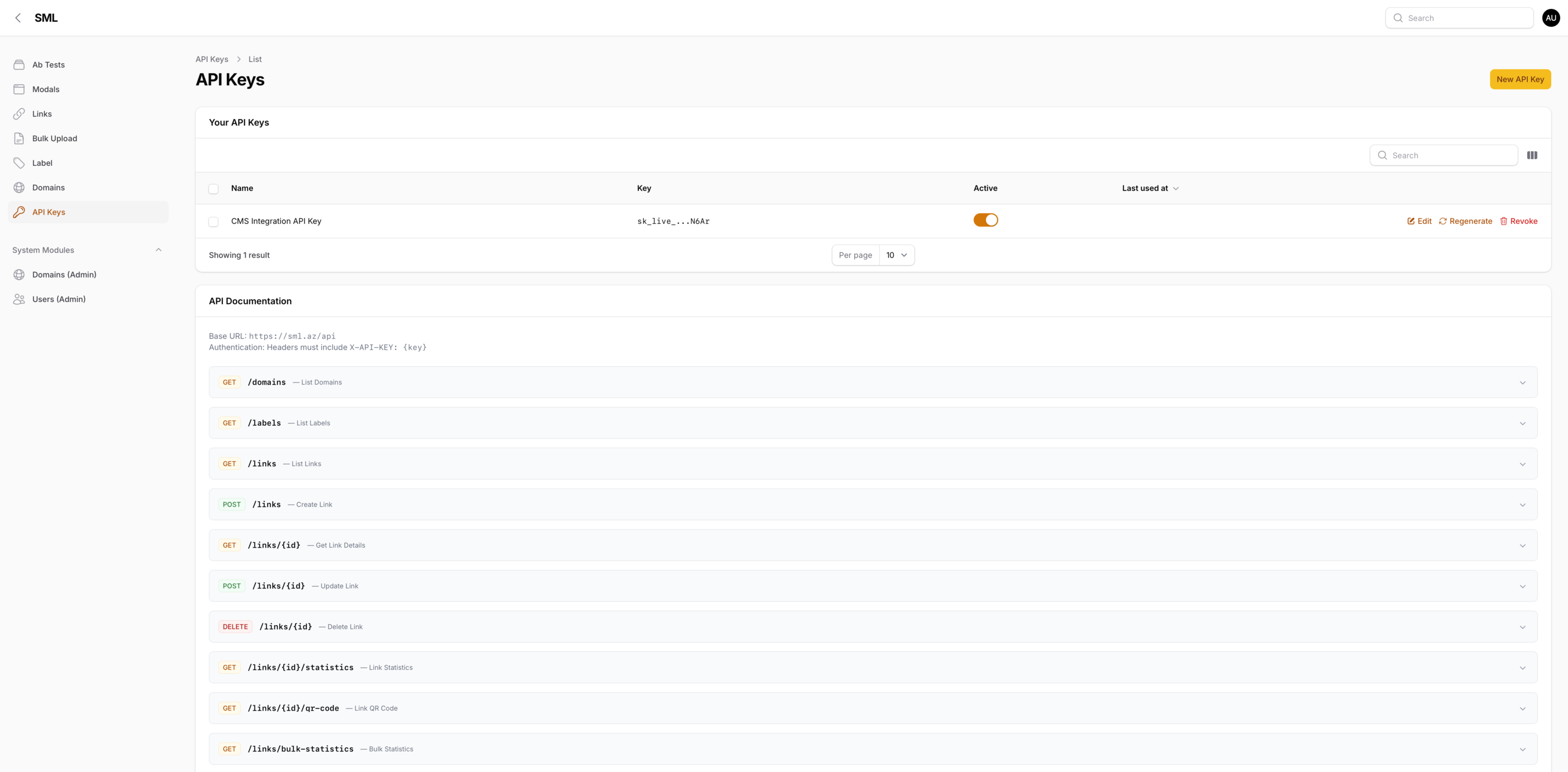 Developer-lər üçün platforma güclü API təqdim edir. Bu API vasitəsilə qısa link yaratma, analitika məlumatlarını əldə etmə və digər funksiyaları öz sistemlərinizə inteqrasiya edə bilərsiniz.
